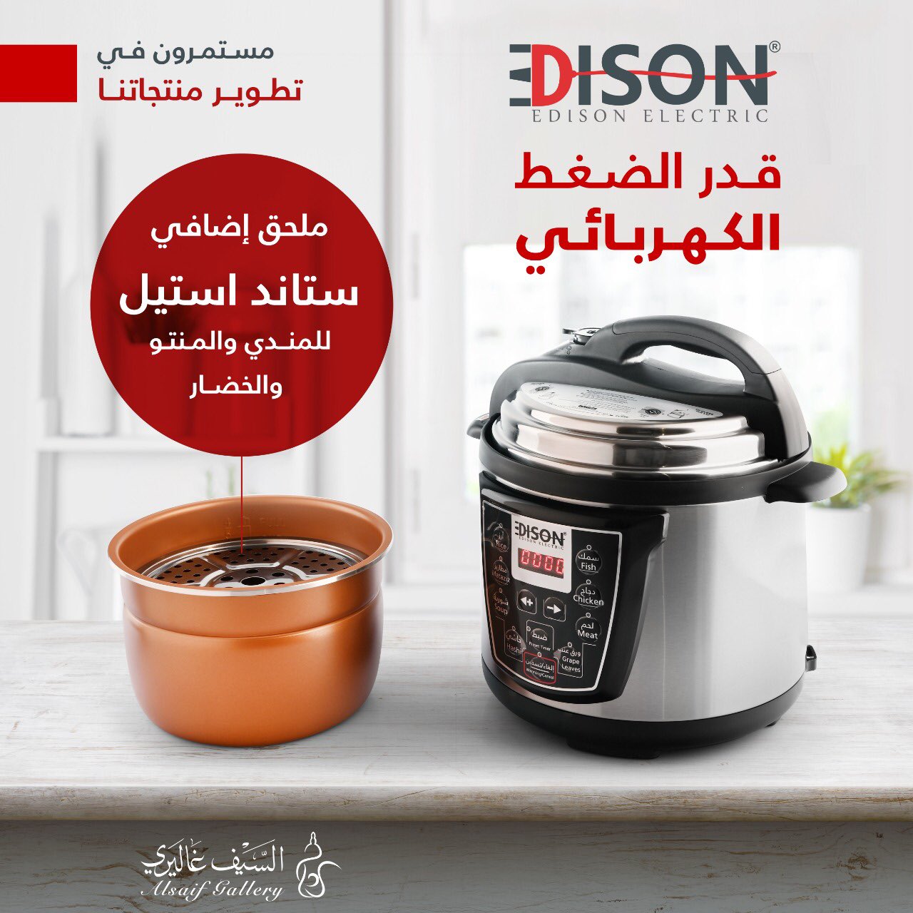 ا لـ سـ يـ ف غـ ا لـ يـ ر ي No Twitter حصريا قدر الضغط الكهربائي من أديسون بأفضل المواصفات مع كل الوظائف التي تحتاجينها استخدميه لطهي وتسخين العديد من الأصناف