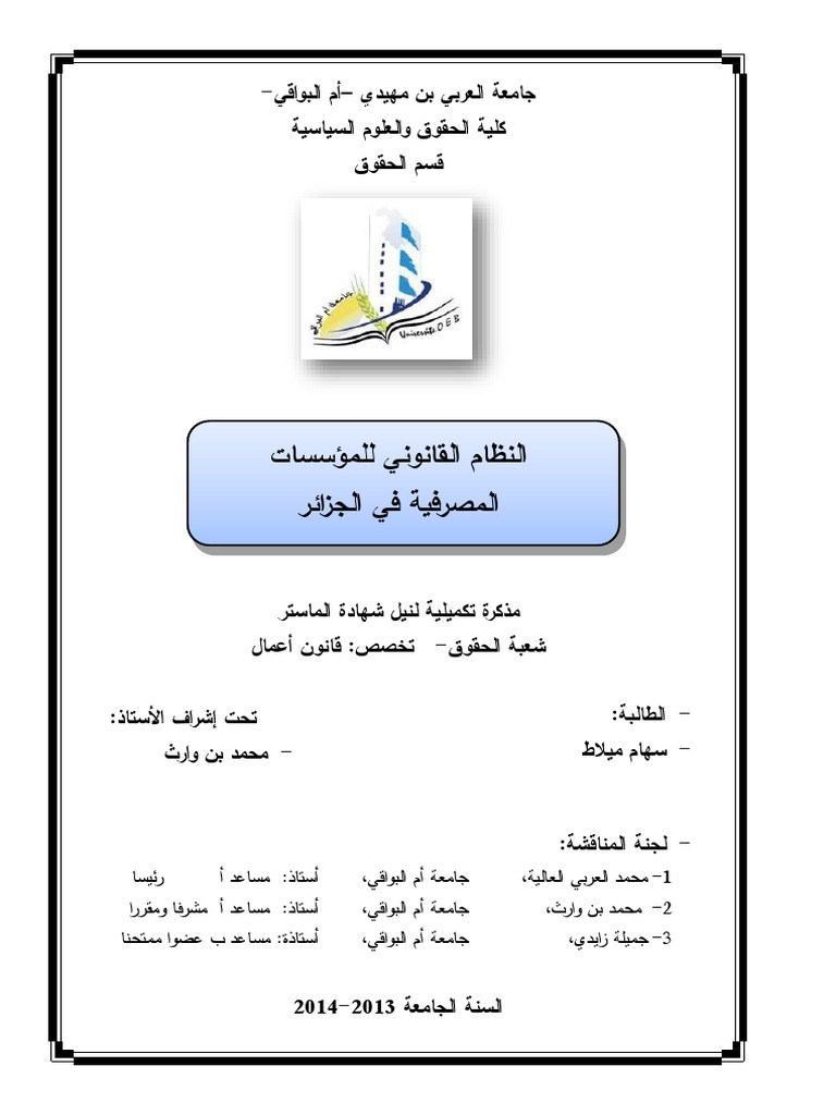 النظام القانوني للمؤسسات المصرفية في الجزائر Pdf